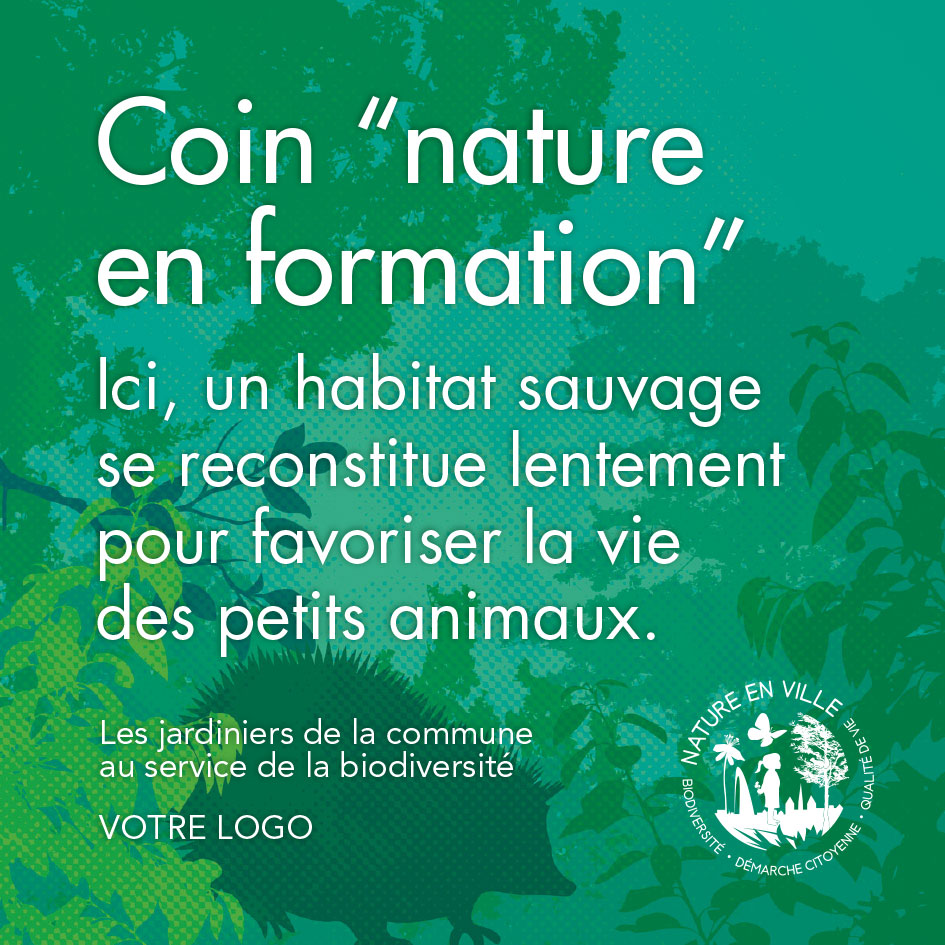 Le sigle Nature en ville ou les panneaux d’entretien différencié peuvent être commandés gratuitement au moyen du formulaire en ligne ci-contre. Vous pouvez aussi télécharger le sigle en cliquant ici.
